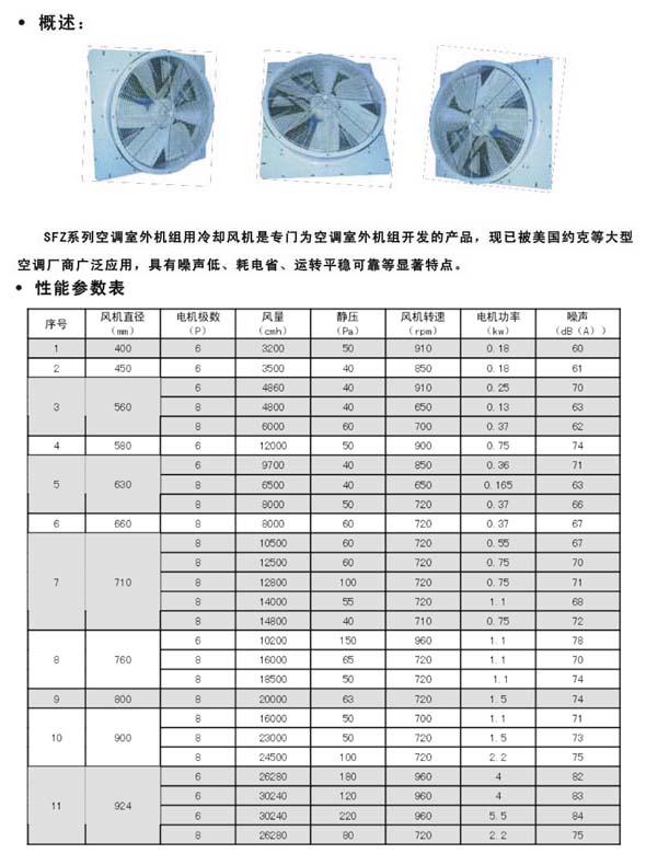 產品名稱:SFZ型空調室外機組冷卻風機
